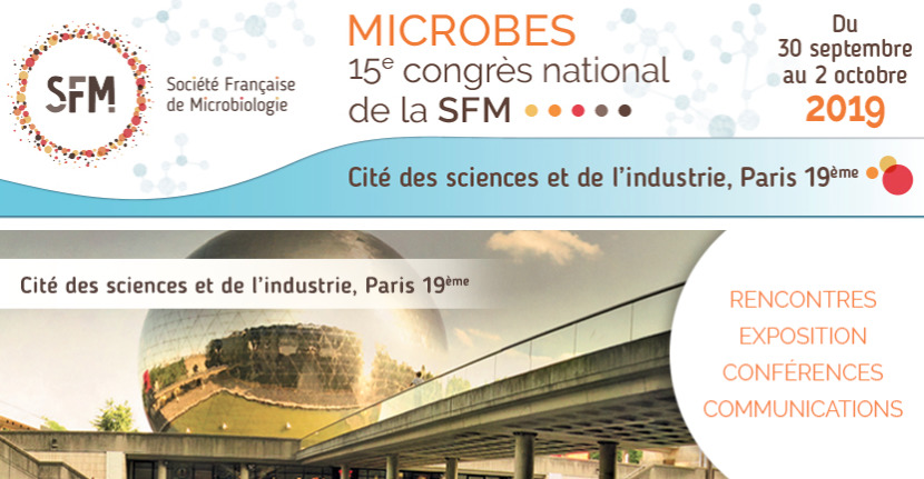 Nous sommes heureux de vous annoncer le 15e congrès national de la SFM qui prend le nom de « MICROBES ». Il aura lieu du 30 septembre au 2 octobre 2019 à la Cité des sciences et de l’industrie, Paris 19ème.