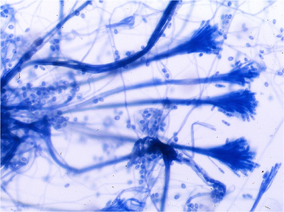 Sur un plan mycologique, ces champignons produisent classiquement des colonies cotonneuses de couleur grise à maturité, avec un verso souvent foncé à noir. Microscopiquement on observe des spores unicellulaires, ovales ou claviformes, hyalines à brunes, insérées à l’extrémité des filaments végétatifs ou de courtes ramifications cylindriques, plus rarement sessiles. Certains isolats, notamment en primoculture à partir d’un prélèvement de terre, peuvent produire un stade Graphium, caractérisé par des corémies, avec des conidiophores disposées parallèlement les uns aux autres et terminés par des annellides produisant des spores unicellulaires, lisses, hyalines et cylindriques. Plus rarement, un stade Pseudallescheria peut être observé, issu de la reproduction sexuée, avec des cléistothèces renfermant des asques à paroi fugace et des ascospores unicellulaires, rondes et brunes. A noter que la différenciation des espèces est quasiment impossible sur le seul examen morphologique ; l’identification précise repose sur le séquençage du locus TUB (gène codant la bêta-tubuline), les bases de données de spectrométrie de masse de type MALDI-TOF ne comprenant pour ce genre qu’un nombre très limité d’espèces.