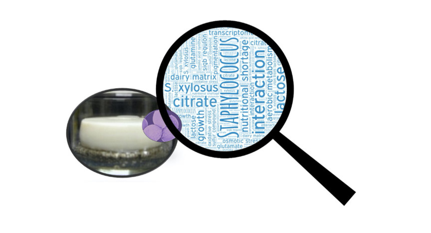 Staphylococcus xylosus fait partie du microbiote des fromages traditionnels. Il est particulièrement présent dans le microbiote de surface qui contribue aux propriétés sensorielles des fromages. Malgré sa fréquence, les mécanismes moléculaires permettant sa croissance et son adaptation dans les produits laitiers sont encore mal connus. Une approche transcriptomique a été utilisée pour déterminer comment le profil d’expression génique est modifié pendant l’étape de fermentation dans une matrice laitière solide. S. xylosus développe un métabolisme aérobie adapté à la surface du fromage. Il surexprime des gènes impliqués dans le catabolisme aérobie de deux sources de carbone de la matrice laitière, le lactose et le citrate. Fait intéressant, S. xylosus doit faire face à une pénurie nutritionnelle en acides aminés et nucléotides, et par conséquent, une surexpression des gènes impliqués dans leur biosynthèse est observée. Comme attendu, le gène sigB est surexprimé en rapport au stress général lié à l’entrée en phase stationnaire de la bactérie et plusieurs gènes sous sa régulation, tels que ceux impliqués dans le transport des anions, des cations et dans la pigmentation sont surexprimés. La surexpression des gènes codant pour les enzymes antioxydantes et les systèmes de transport et de synthèse de la glycine-bétaïne révèle que S. xylosus doit faire face à un stress oxydatif et osmotique. De plus, S. xylosus exprime un système original potentiellement impliqué dans l’acquisition du fer à partir de la lactoferrine.