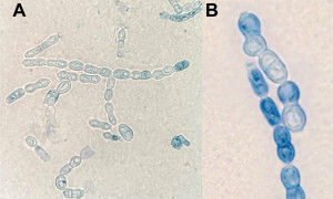 Le diagnostic différentiel avec d’autres champignons arthrosporés tels que Neoscytalidium sp. ou Geotrichum sp. est aisé compte tenu de leur croissance rapide, de leur morphologie microscopique (spores d’aspect cylindrique) et de leur sensibilité au cycloheximide.