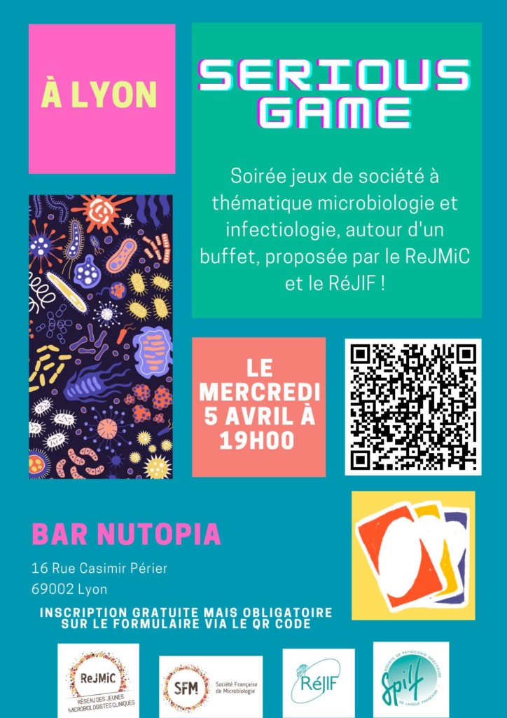 La prochaine soirée Serious Game aura lieu le 5 avril et sera pour la première fois délocalisée à Lyon. Rendez-vous au bar Nutopia, 16 Rue Casimir Périer, 69002 Lyon à partir de 19h. Toutes les informations utiles ici et sur nos réseaux sociaux. En espérant vous y voir nombreux ! Inscription via le formulaire suivant : https://docs.google.com/forms/d/e/1FAIpQLSdGyvmyFG9tagWhT3p6lcbWSsw00EoEcxZgmdVqcVJofK-maA/viewform?usp=pp_url