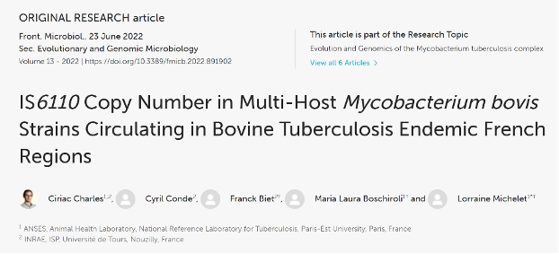 Ce mois-ci, notre coup de cœur est proposé par Ciriac et porte sur une séquence d’insertion (IS6110), présente notamment chez Mycobacterium bovis et pouvant jouer un rôle dans la plasticité du génome et l’évolution bactérienne. M. bovis provoque la tuberculose bovine qui est une maladie zoonotique. Bien que la France ait le statut d’indemne de tuberculose, il existe encore aujourd’hui des régions avec une prévalence plus forte où circule de façon persistante des souches de M. bovis d’un même génotype. Il est donc important de comprendre quels sont les déterminants (génétiques ou non) qui permettent le succès de ces souches.